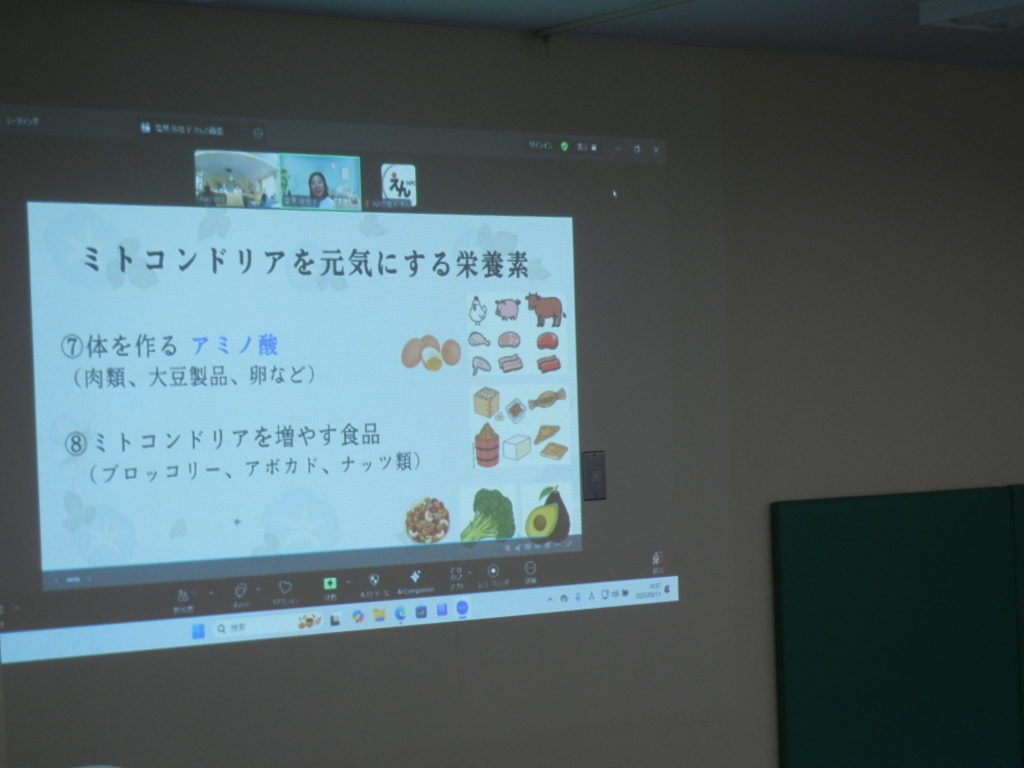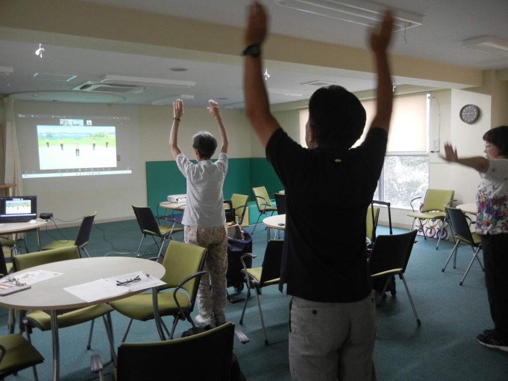 本日は、天候の影響もあり少人数の参加であったため、講師をフリートークをしたり、急遽体操をしたりなど、楽しみました。