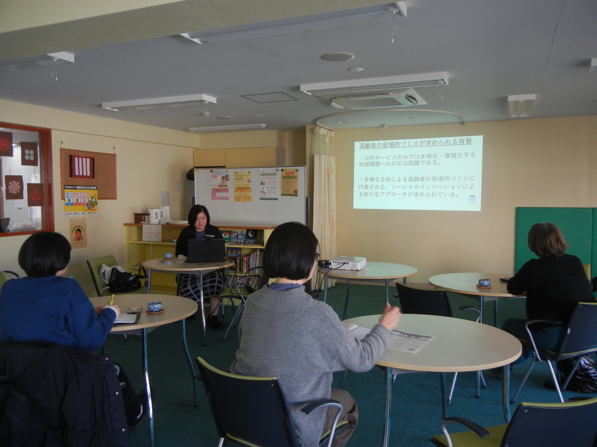 多世代交流ひろばパルひろば辰巳にてNPOえん研修会『高齢者の居場所作りと介護 予防』を講師に立教大学コミュニティ福祉学部の長倉真寿美教授をお招きして、 開催しました。